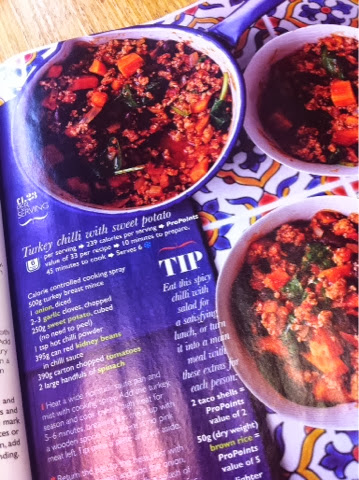 My sister was a bit down last week that her weight on weighteatchers was slowly going up instead of down (she can't exercise because of a hernia she's got that is waiting to be operated on) so I had planned to visit her tonight with a shopping bag full of goodies for this healthy chilli recipe: